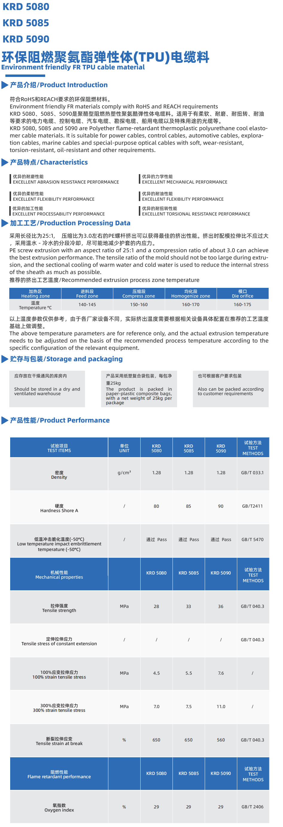 - KRD 5080 Environment friendly FR TPU cable material